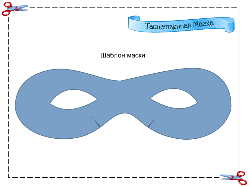 Распечатайте шаблон маски и переведите его на плотный картон, вырежите по контуру. Сделайте прорези для глаз. Покрасьте черной гуашью с добавлением клея ПВА или оклейте черной тканью. По бокам сделайте небольшие отверстия, вставьте в них резинку и концы завяжите на узел.