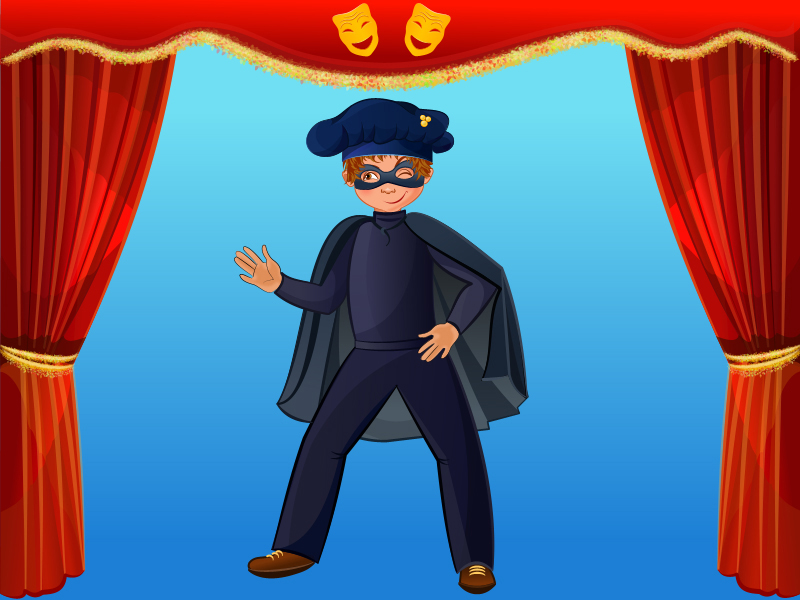 Шаблон маски можно перевести не на картон, а на ткань, например велюровую или бархатную. В этом случае не забудьте продолжить маску, дорисовав с двух сторон хвостики, чтобы ее можно было повязать вокруг головы. Самое главное – обметать края срезов, чтобы ткань не распускалась. Чтобы сделать берет, из темной ткани выкроите полоску, длиной на пару сантиметров больше обхвата головы. Это будет основная часть головного убора. Сложите ее пополам поперек лицевой стороной внутрь и сострочите по краю. Затем из той же темной ткани вырежите круг на несколько сантиметров больше обхвата головы. Пришейте, присборивая верх берета к основной части. Обработайте края зигзагом.