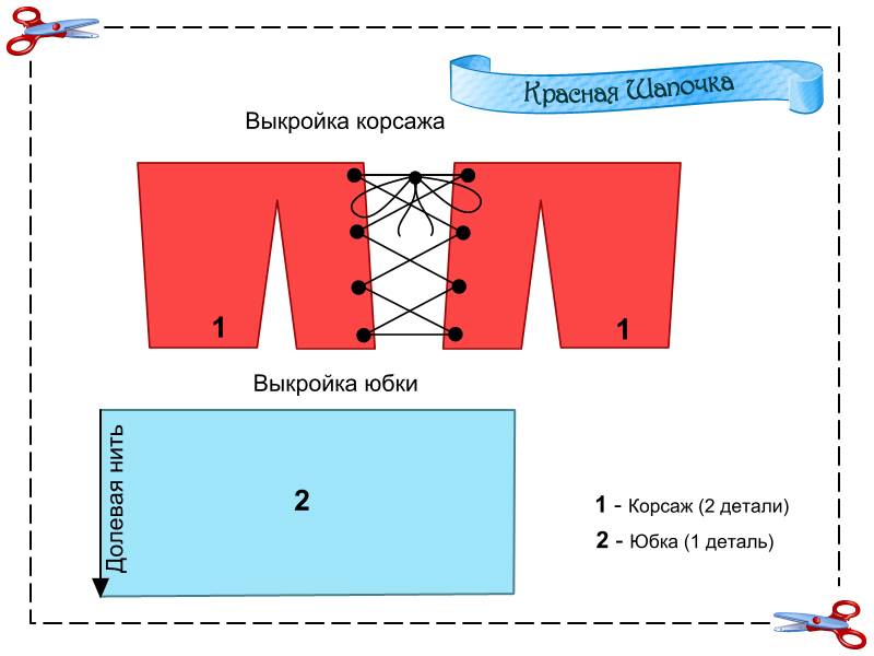 Но костюм Красной Шапочки можно сделать интереснее и полнее, дополнив его корсажем из плотной ткани.