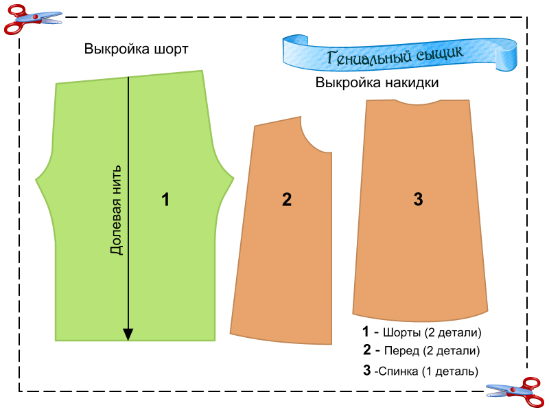 На полочках сделайте прорези для рук, которые расположите чуть ниже локтевого сгиба. Обработайте края швом зигзаг
