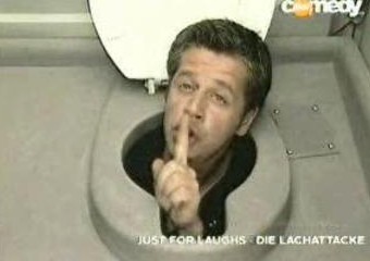 Суть розыгрыша была в том, что на унитаз натягивалась пищевая пленка (в которую обычно заворачивают продукты) и ее не видно, тем более не вооруженным взглядом