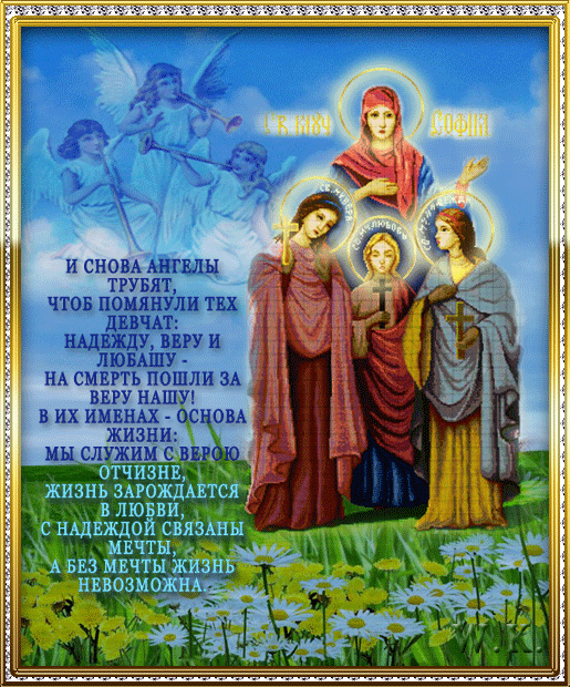 Анимированные картинки и открытки с праздником Святой Софии и ее дочерей Веры, Надежды и Любви.