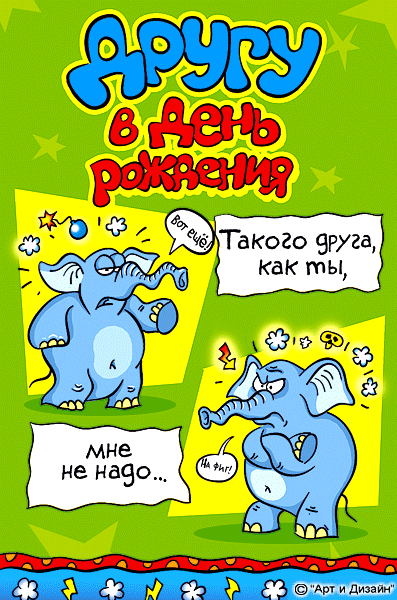 Настоящий друг никогда не забудет поздравить с днем рождения. Отправляйте прикольные поздравительные открытки друзьям в день рождения. Каждая открытка сопровождается стихами с оригинальными пожеланиями. См. также: поздравления с днем рождения для друзей.