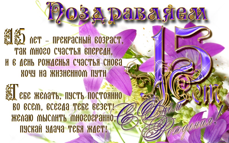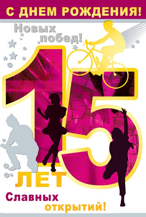 Анимированные картинки и открытки на пятнадцатилетний юбилей для девушек и парней.