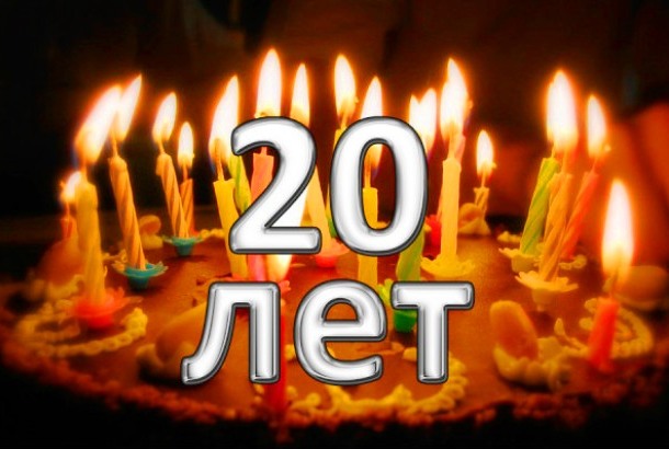 Анимированные открытки и картинки с поздравлениями на двадцатилетний юбилей для девушек и парней.