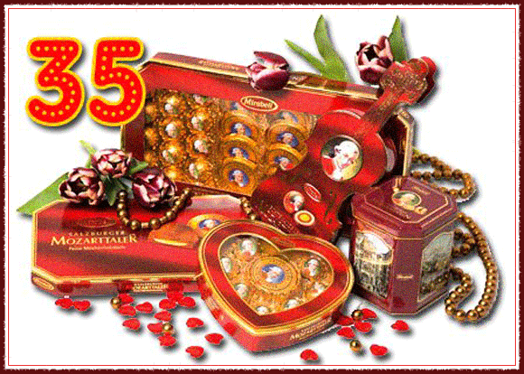 Анимированные открытки и прикольные картинки с поздравлениями на тридцатипятилетний юбилей для мужчин и женщин.