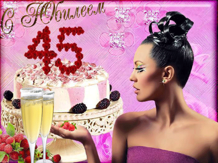 Анимированные открытки и прикольные картинки с поздравлениями на сорокапятилетний юбилей для мужчин и женщин.
