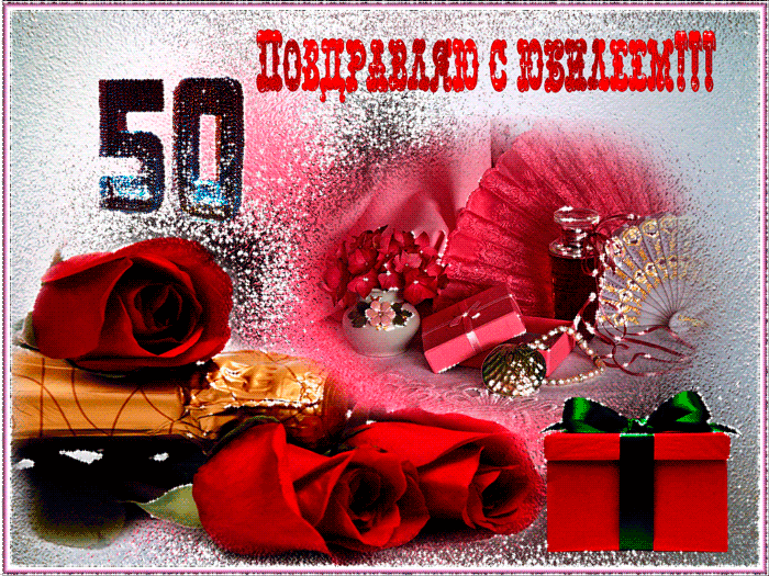 Анимированные открытки и прикольные картинки с поздравлениями на пятидесятилетний юбилей для женщин и мужчин.