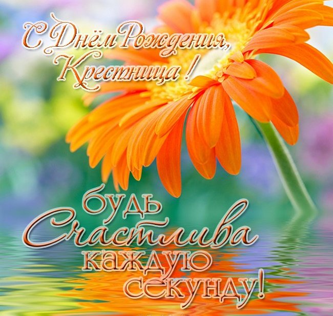 Милая моя крестница! Сегодня у тебя замечательный праздник – твой день рождения! Проведи его в отличном настроении, в окружении своих родных и друзей! Желаю, чтобы в твоей жизни было больше тепла, любви, надежды и веры! И чтобы каждый день происходило что-нибудь хорошее! Будь счастлива!