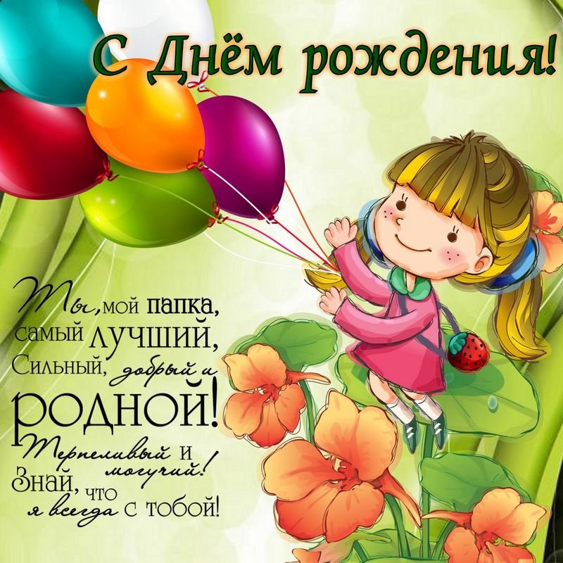 Папа! Я тебя поздравляю с Днём Рождения! Ты для меня лучший в мире отец! Ты всегда был, остаёшься и будешь в моей жизни самым главным человеком! Самым надёжным и заботливым, самым добрым и отзывчивым! Я тебя очень люблю и ценю за то, что ты поможешь в любой ситуации, решишь любую проблемы, поддержишь. Я всегда могу на тебя положиться и буду уверена, что всё будет хорошо, что ты всегда придёшь на помощь и не оставишь в беде своё дитя. Мне хочется, чтобы ты жил до 100 лет, чтоб каждый день твоей жизни был наполнен счастьем и радостью! Пусть в твоей душе будут гармония и любовь! Помни, что твоя семья тебя очень любит, мы всегда будем твоими помощниками и верными друзьями! Будь счастлив! С Днём Рождения!!