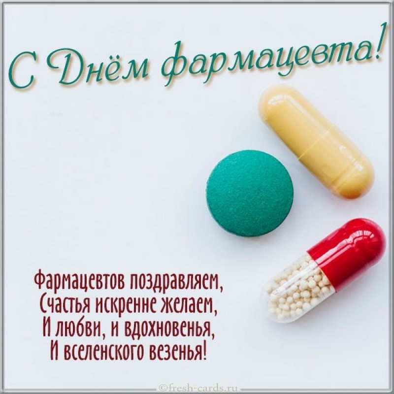Поздравляю фармацевтов с профессиональным праздником. Желаю Вам счастья, здоровья и успешного развития бизнеса. Работа фармацевта — важная составляющая лечебного процесса, поскольку именно от фармацевтов во многом зависит получение пациентом качественных и эффективных лекарственных препаратов. Пусть оценкой работы фармацевтов всегда будет фраза «Точно, как в аптеке».