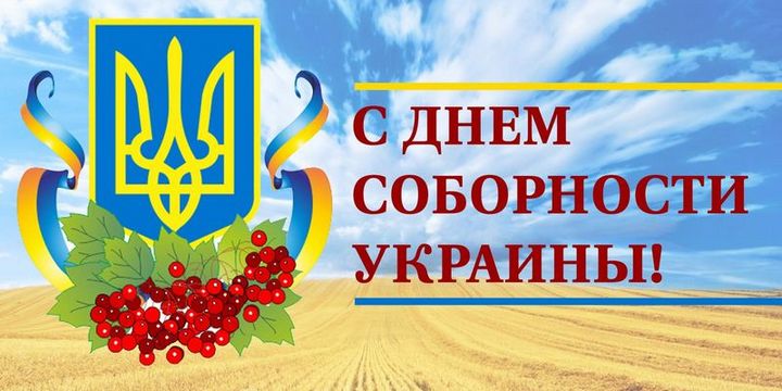 22 января мы празднуем День соборности Украины — день, символизирующий единство земель Украины. Всем жителям страны шлём свои поздравления и пожелания каждому из нас сохранять силу духа, бодрость и оптимизм. Пусть в каждой семье царит мир и спокойствие, любовь и взаимопонимание. Мы верим в наше светлое будущее и будем содействовать развитию и процветанию любимой страны.