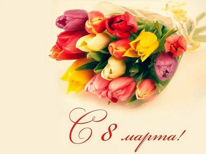 Поздравляем Вас от всего нашего коллектива с прекрасным весенним праздником, с 8 Марта, желаем, чтобы он вошёл в Вашу жизнь яркой и радостной датой, днём, когда сбудутся все мечты и планы, будьте всегда успешны, здоровы, востребованы и любимы.