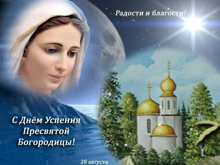 Успение Пресвятой Богородицы - православный праздник, который посвящён успению (смерти) Божией Матери. Принадлежит к числу двунадесятых. В православной церкви празднуется 28 августа по новому стилю (15 августа по юлианскому календарю). В этот день, согласно преданию, апостолы разных стран собрались в Иерусалим, чтобы проститься и совершить погребение Девы Марии.