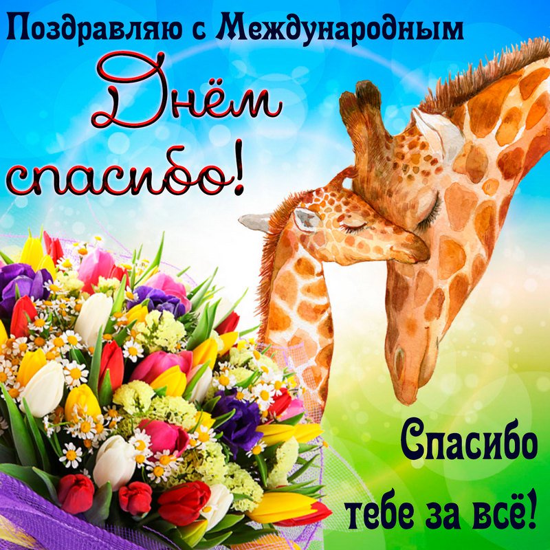 В Международный день спасибо я искренне благодарю за понимание и теплоту твоего сердца. Желаю в жизни море ярких красок и великих дел, взаимопонимания с любимыми и большой удачи. Пусть в жизни будет много возможностей и шансов для доброго творчества, и помощи людям, за что тебе скажут от всей души «спасибо».