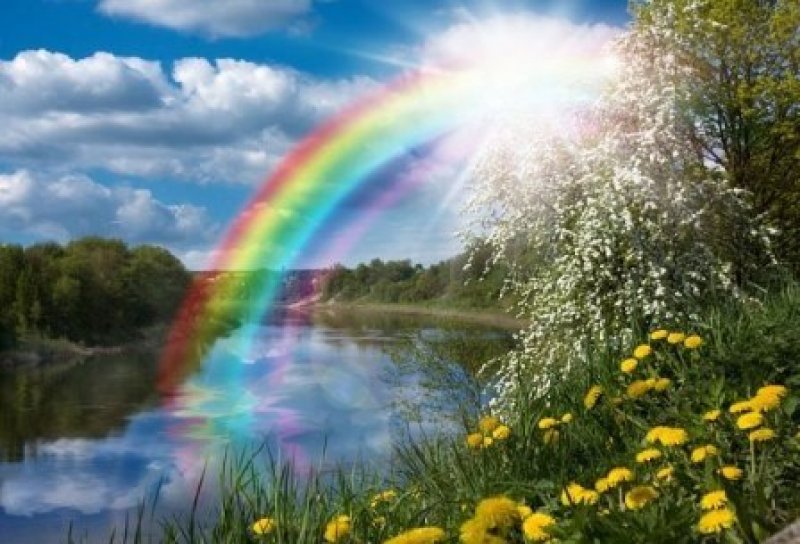 Виснет радуга цветная,