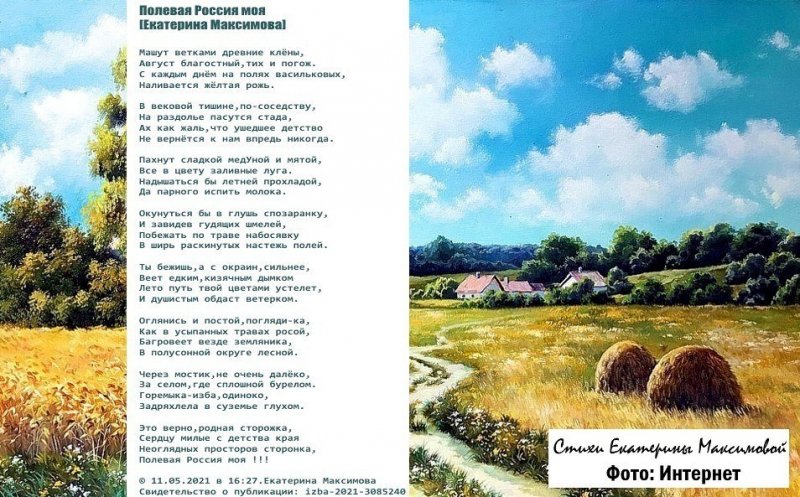 Взгляд не прячет за стога.